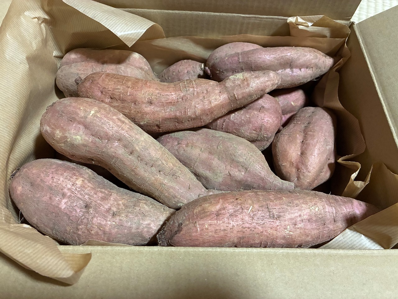常温(適温13~15℃)で風通しの良い場所で暗所保存すると長持ちします。さつまいもは低温(5℃以下)に弱いため、冷蔵庫は避けて下さい。